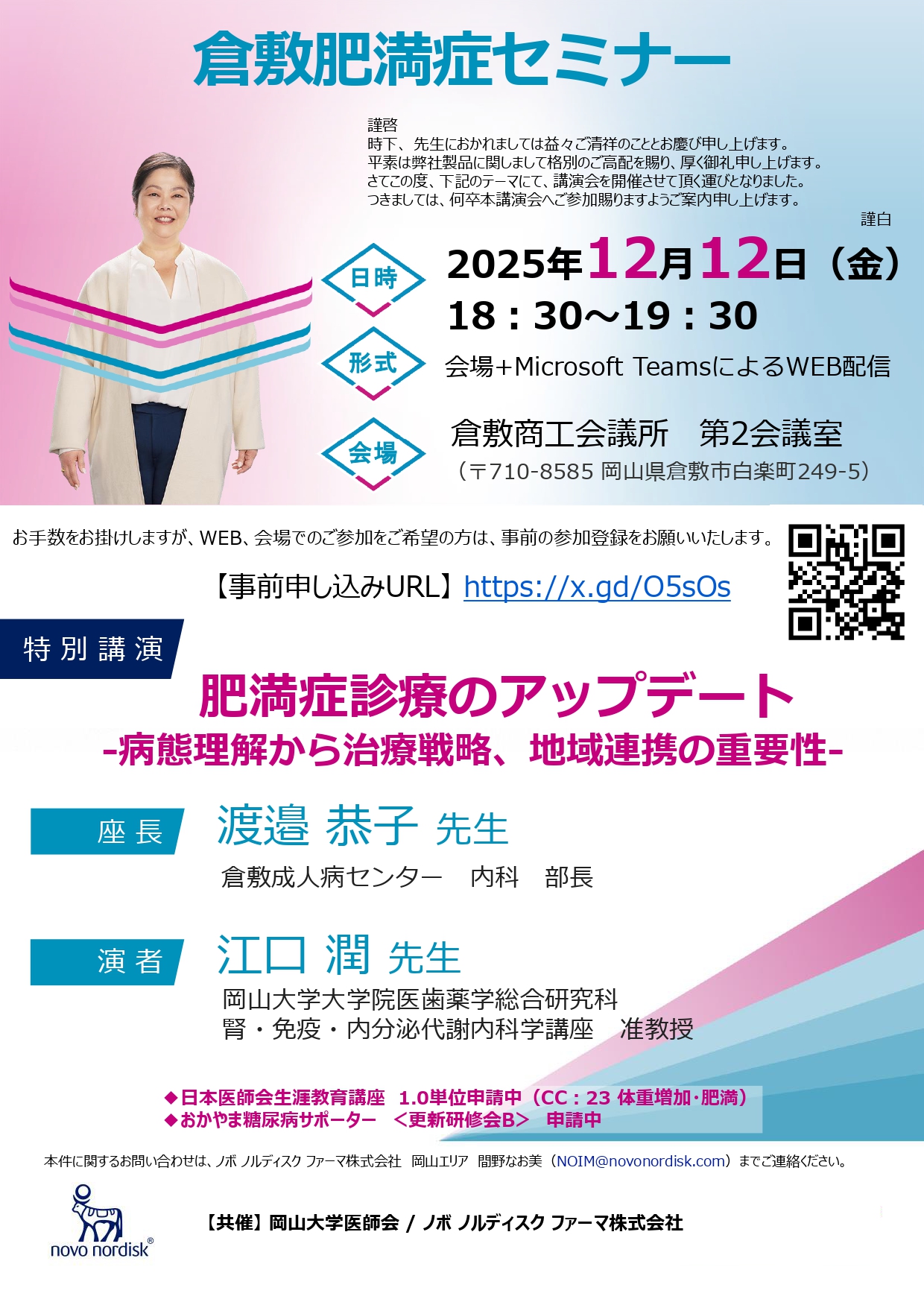 研修会名 【ハイブリッド開催】倉敷肥満症セミナー