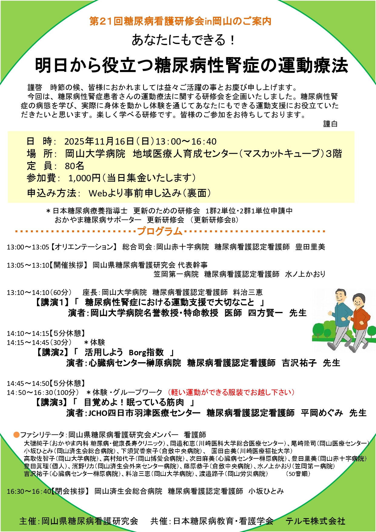 研修会名 【会場開催】第21回糖尿病看護研修会 in 岡山